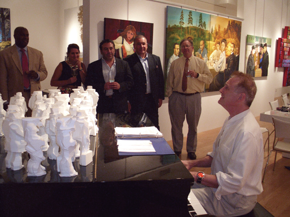 Mr. Gertsman’s special guest and friend, collector Robert Cancro, Professor and Chairman Emeritus of Psychiatry at New York University Medical Center, and his wife Gloria, a poet who has written several poems about Russian art, enjoyed the performance. Dr. Cancro has been a longtime consultant to the U.S. Secret Service and is known for developing a U.S.-Russian research consortium on terrorism and posttraumatic stress disorder. At another dinner at the gallery Kim Oler, winner of multiple Daytime Emmy Awards, the Richard Rogers Award and the BMI Jerry Harrington Award, entertained the guests with his trademark cabaret-style singing and piano playing with grace, ease and elegance. Guests, surrounding the piano, were completely immersed into the musical world of Mr. Oler as he performed his own compositions. <- Back |